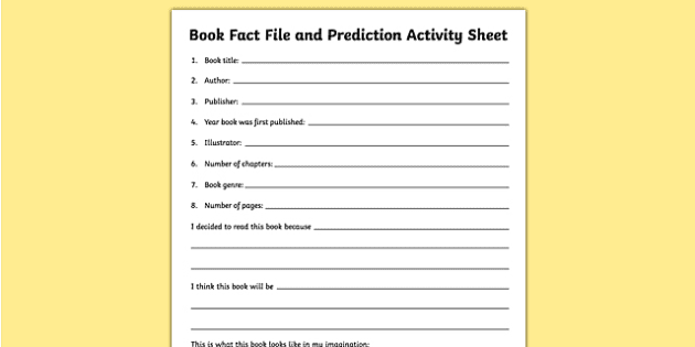 Book Fact File And Prediction Worksheet Worksheet Worksheet